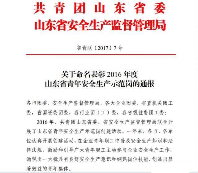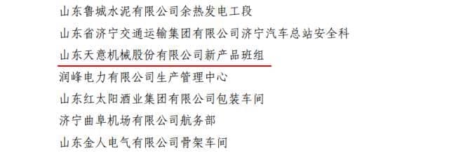 為激勵(lì)引導(dǎo)全省廣大青年職工強(qiáng)化安全生產(chǎn)意識(shí),提高安全生產(chǎn)技能,參與安全生產(chǎn)管理,2016年共青團(tuán)山東省委、山東省安全生產(chǎn)監(jiān)督管理局聯(lián)合開(kāi)展了山東省青年安全生產(chǎn)示范崗創(chuàng)建活動(dòng)。山東天意機(jī)械股份有限公司新產(chǎn)品班組榮獲2016年度“山東省青年安全生產(chǎn)示范崗”